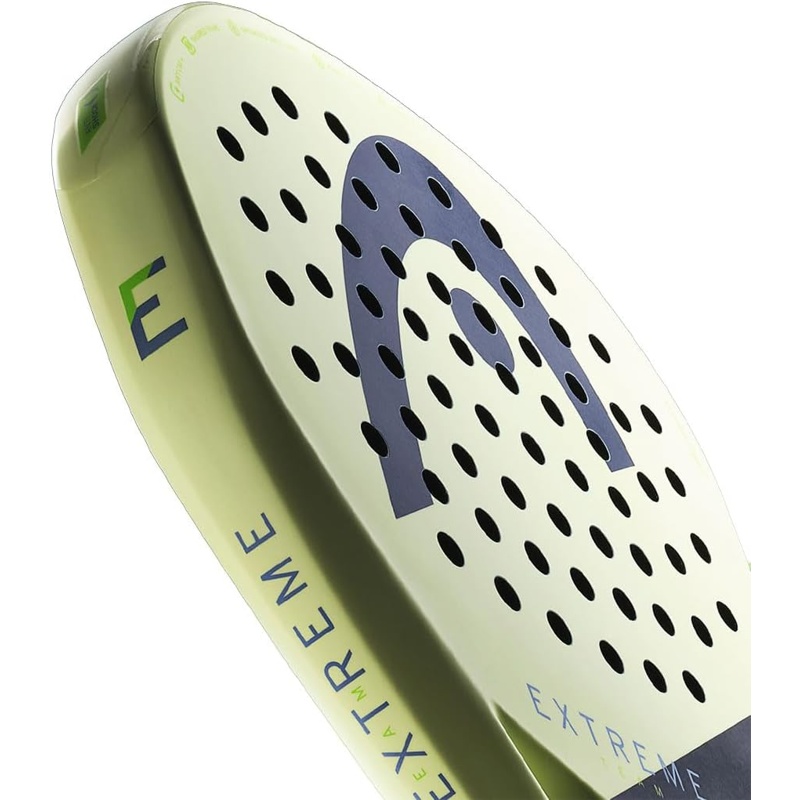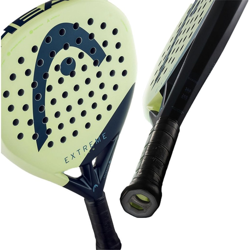 La Pala de Pádel Head Extreme Team 2025 Diamante presenta un formato de diamante que favorece un balance hacia la cabeza. Su núcleo está compuesto de goma EVA, que contribuye a un efecto de salida de bola. La superficie externa está fabricada en fibra de vidrio. La estructura se compone de un marco de carbono, lo que aporta rigidez. Esta pala incluye la tecnología de control del golpeo en el centro de la superficie, permitiendo una distribución equilibrada de la fuerza. Su peso oscila entre los 360 y 375 gramos. La Pala de Pádel Head Extreme Team 2025 Diamante también cuenta con una textura en la superficie que mejora la adherencia con la bola. Este modelo incorpora un diseño de perforaciones que favorece la aerodinámica. Adicionalmente, está diseñada para un uso en canchas de pádel.