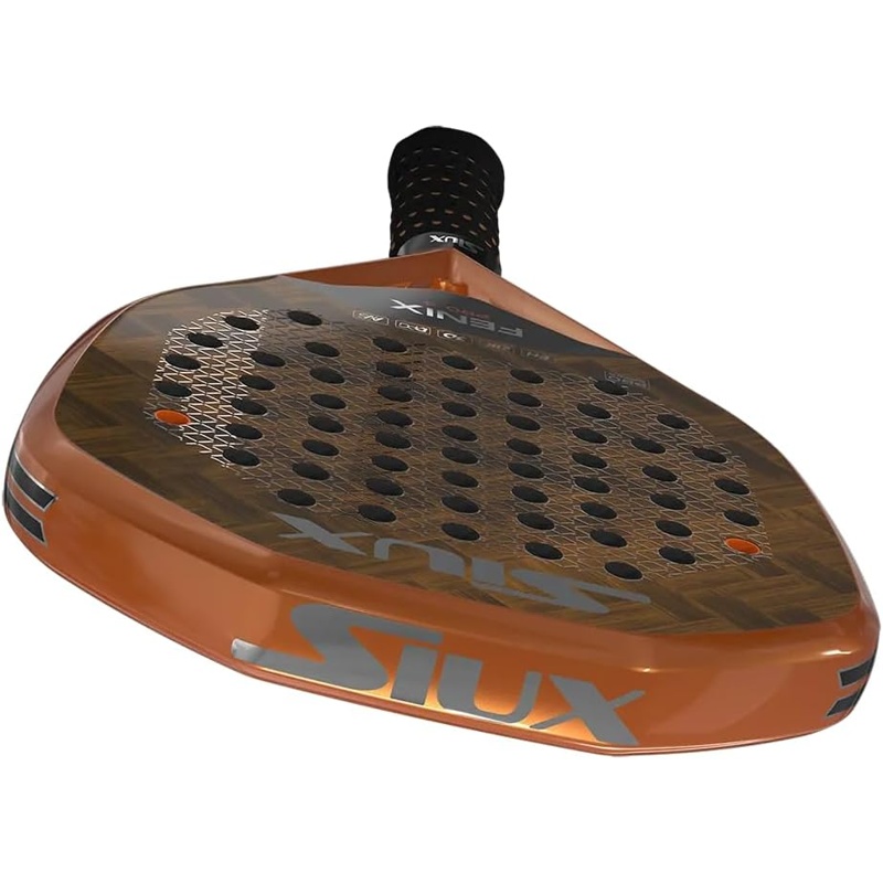 La pala de pádel Siux Fénix Pro 4 2024 presenta una estructura de forma diamante, diseñada para proporcionar un mayor punto de potencia. Su núcleo está compuesto por goma EVA, que contribuye a un juego dinámico. La superficie está fabricada con carbono Textreme 3D, un material que permite incrementar la rigidez y mejorar la respuesta en el golpeo. Este modelo incluye un marco de carbono de alta densidad, lo que aumenta la resistencia a impactos. La pala cuenta con tecnología de absorción de vibraciones, que ayuda a mitigar el efecto de los impactos en la muñeca y el codo. Su peso se sitúa en el rango habitual para palas de este tipo, facilitando su manejo en el juego. Esta pala está diseñada para jugadores que buscan rendimiento en sus golpes y control en la pista. La combinación de materiales y su forma estructural la hacen adecuada para una experiencia de juego completa. Además, es compatible con diferentes tipos de accesorios y detalles que permiten personalizar la experiencia de juego.